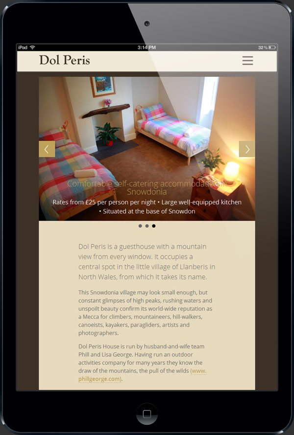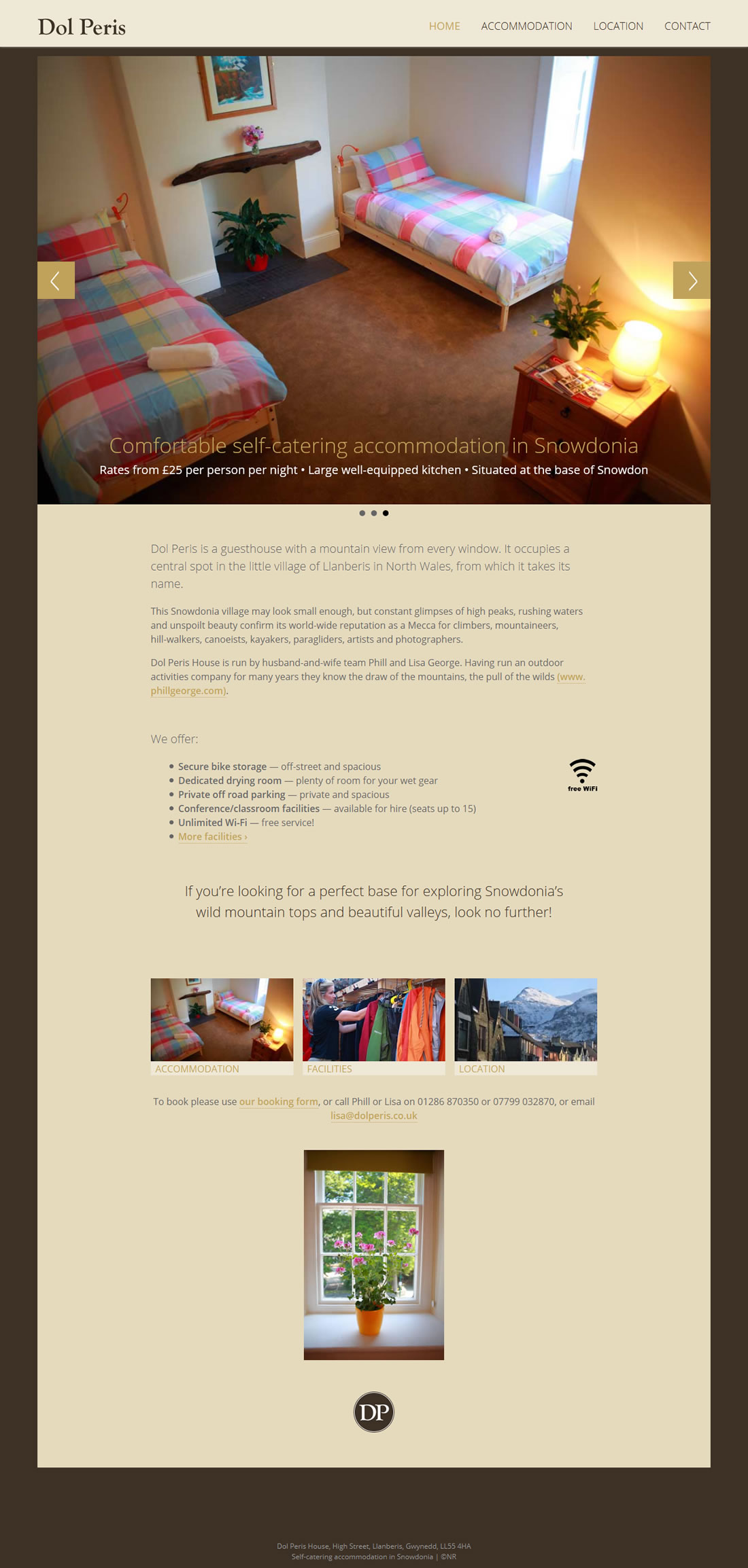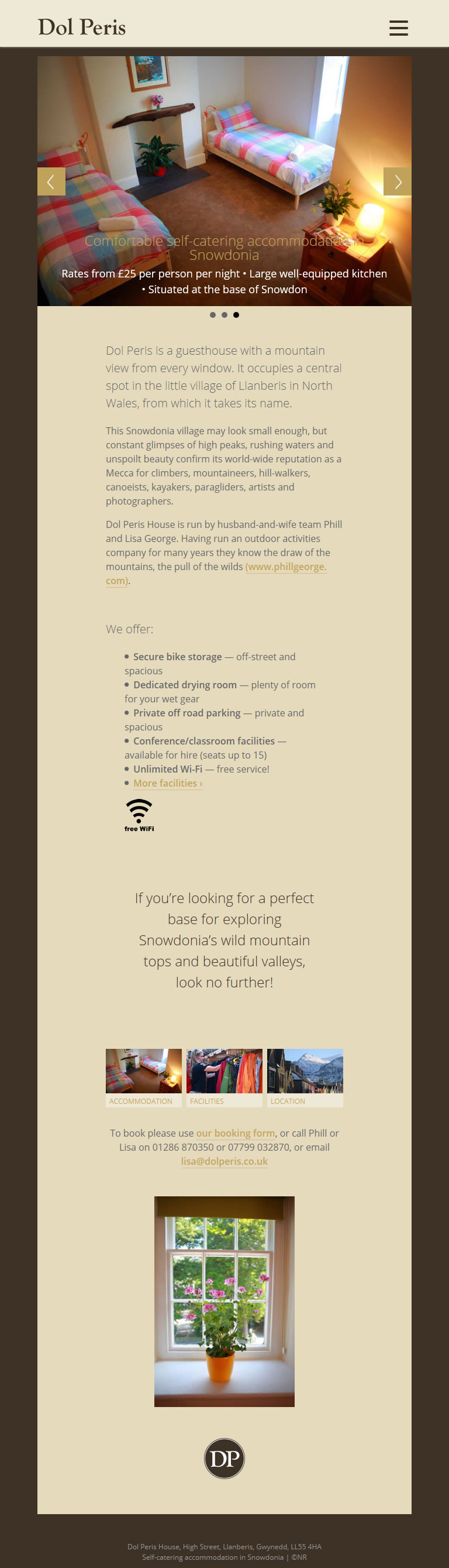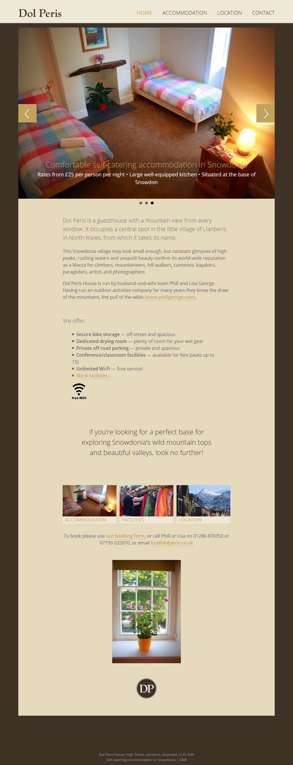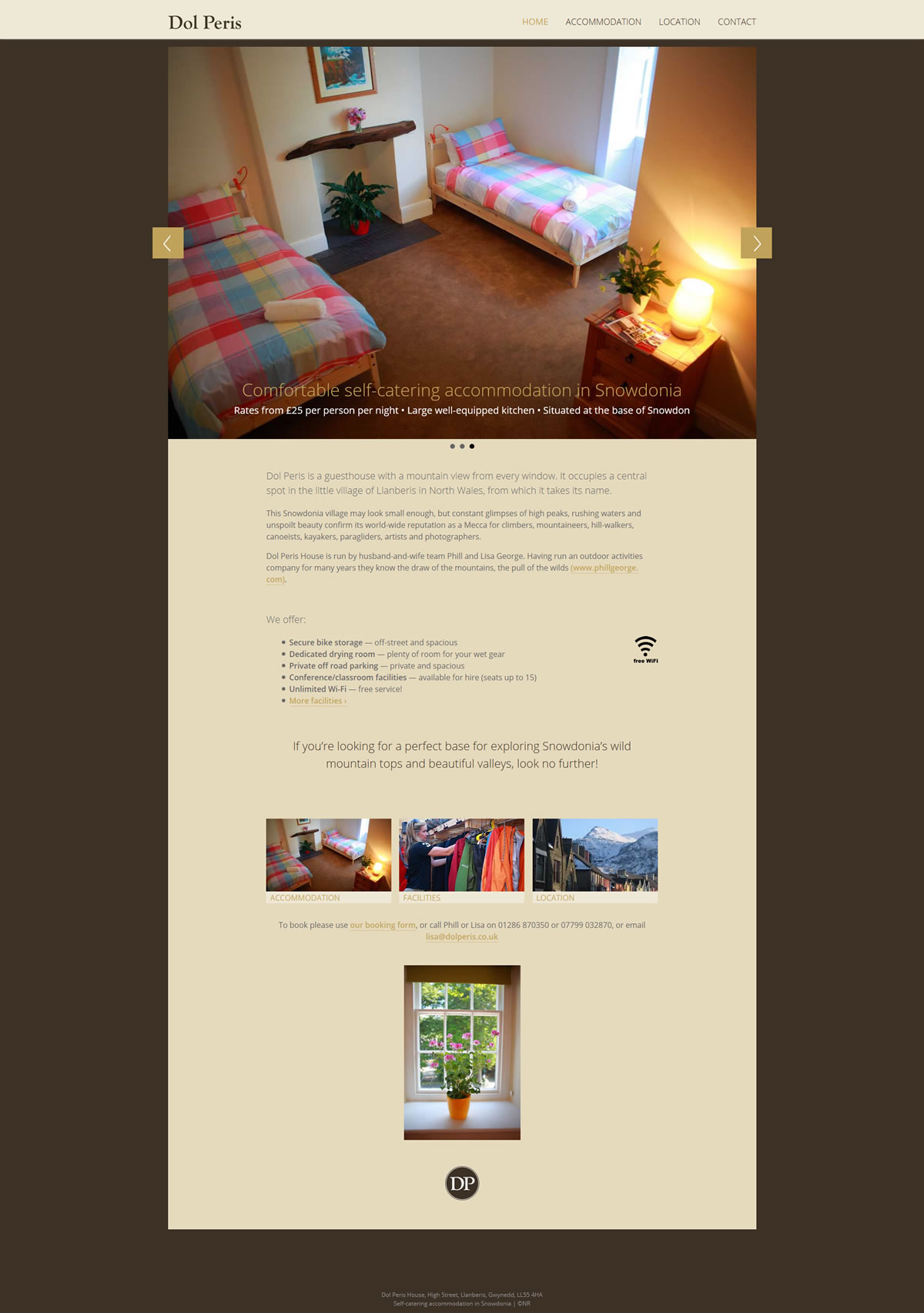 The Dol Peris guest house responsive website features lots of images, and the ‘story’ is told in a simple and appealing way. Photography was also by R.